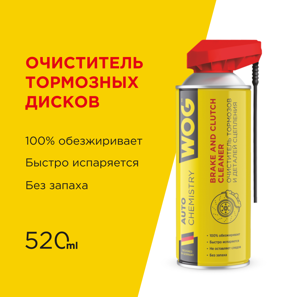 Очиститель WOG тормозных дисков и сцепления с профес. распылителем 2 в 1, 520мл