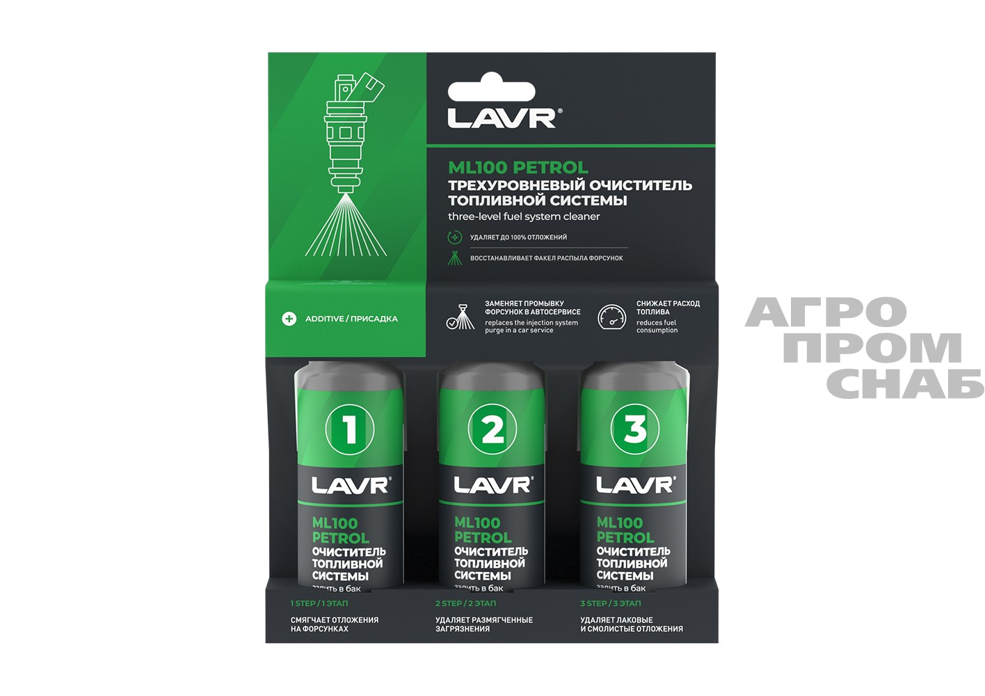 Трехуровневая очистка топливной системы LAVR PETROL ML100 3*120мл