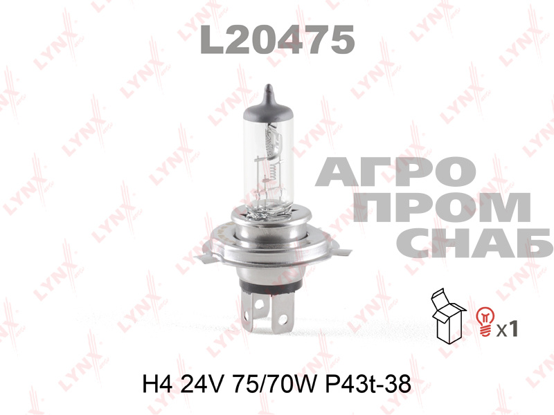 Автолампа H4 24V 75/70W P43t-38 (L20475) "Lynx" (Япония)