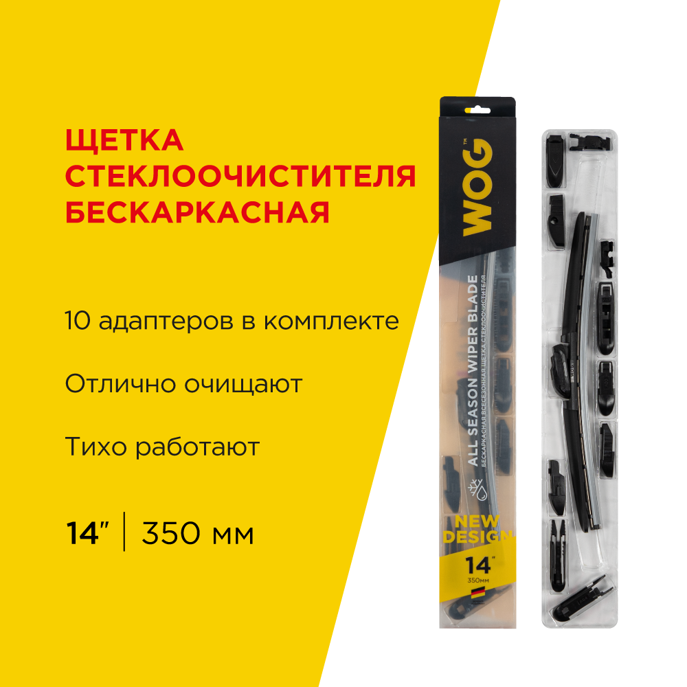 Щетка стеклоочистителя бескаркасная WOG 14"/350 мм WGC1401с компл. адапт. (10 шт.) WOG