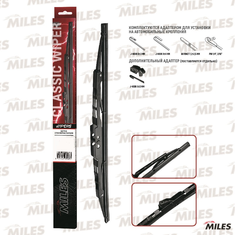 Щетка стеклоочистителя каркасная MILES 13"/330мм CWC13AC (+ мультиадаптер)