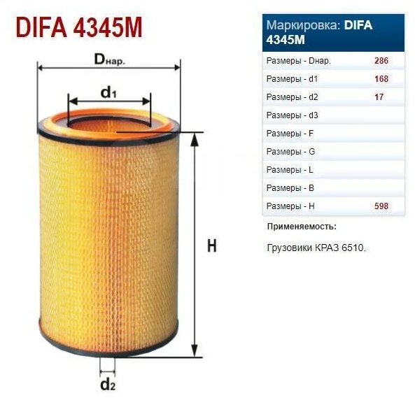 Фильтр воздушный 4345М DIFA (Беларусь)