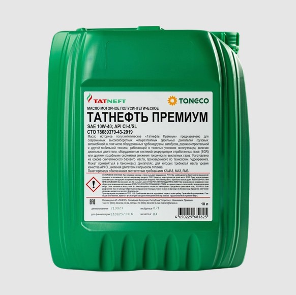 Масло Татнефть МОТОРНОЕ Премиум 10W-40 CI-4/SL (п/с) 10л.