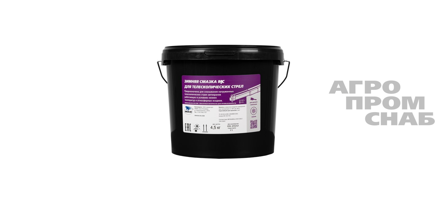 Смазка зимняя для телескопических стрел, изготовлена на основе кальциевого загустителя и специально подобранного минерального масла с высокой вязкостью.