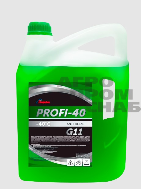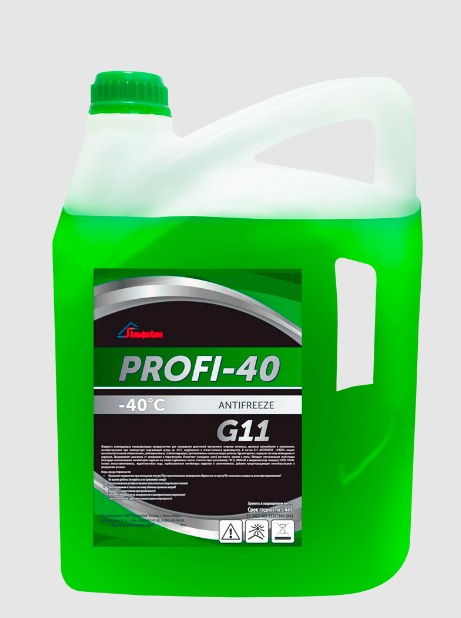 Антифриз PROFI-40 G11 разработан для применения в условиях снижения температуры до -40°С. При более низких отметках не результативен. Имеет зеленый цвет. Эксплуатируется на спецтехнике, грузовом и легковом транспорте всех марок.